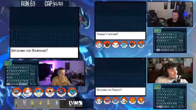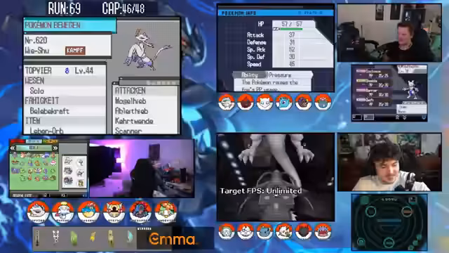 02:46:45Die Streamer wechseln zu Pokémon-Kämpfen, wobei sie ihre Teams vorstellen. Einige haben benötigte TMs wie Psycho-Erdquake und Eistrahl. Sie diskutieren über verschiedene Pokémon, ihre Stärken und Schwächen sowie die Einsatzmöglichkeiten. Die Teams durchlaufen Encounters und Training, wobei sie auf die Anpassung der Strategien je nach Gegner achten. Die Erfassung seltener Pokémon wie Meloetta wird als wichtig angesehen.