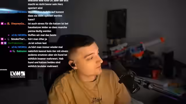 08:06:14Der Streamer berichtet von einem früheren traumatischen Erlebnis, bei dem eine seiner Katzen während einer Kastration verstorben ist. Dies hat dazu geführt, dass er Angst hat, seine aktuelle Katze Nia ebenfalls operieren zu lassen. Er erzählt von der anhaltenden Unannehmlichkeit durch das Miauen und Pinkeln der Katze und wie sehr dies sein Leben beeinträchtigt. Obwohl er der Kastration zustimmen muss, ist er emotional belastet und macht sich Sorgen, was passieren könnte, falls etwas schiefgeht.