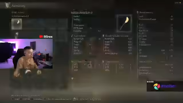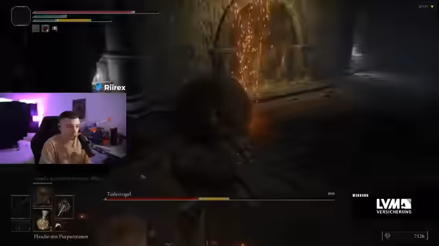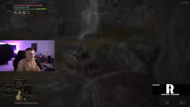 00:08:47Der Streamer kämpft mit stufenlos skalierten Bossen und Gegnern, die ihn trotz hohem Level auf einem Schlag töten können. Er findet heraus, dass DLC-Gegner im Randomizer keine Skalierung erhalten, was Runs frustrierend macht. Es gibt viele gescheiterte Versuche gegen Bossen wie den Feuerriesen und den Hornherald, während gleichzeitig kaum nützliche Items oder Upgrade-Materialien gefunden werden. Die Suche nach besseren Waffen und Leveln wird zur Priorität.