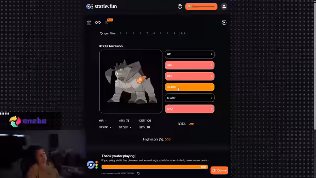 08:11:14Nach den persönlichen Themen wechselt der Streamer zu einem eher unterhaltsamen Spiel, bei dem es darum geht, Teams mit möglichst hoher Gesamtstatistik (BST) zu bilden. Er experimentiert mit verschiedenen Pokémon aus verschiedenen Generationen und versucht, Teams mit möglichst hoher Gesamtstatistik zu erstellen. Dabei stolpert er über Schwierigkeiten, insbesondere bei späteren Generationen, und teilt seine Frustration mit dem Chat, als er feststellt, dass viele Pokémon nur Kinderstadien haben und daher nicht genug Statistik-Punkte bieten können.