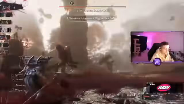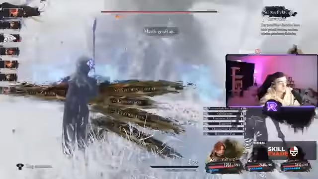 03:21:46Ein Großteil des Streams widmet sich einem extrem schwierigen Kampf gegen den Boss Maele. Der Streamer kämpft mit der Mechanik des Bosskampfs, der eine zweite Phase mit hohem Leben und vielen Attacken hat. Er muss seine Taktik ständig anpassen, seine Teammitglieder strategisch einsetzen und kämpft darum, die Attacken zu parieren oder auszuweichen. Der Kampf ist geprägt von vielen Fehlern und Neustarts, aber auch von Anerkennung für den Boss als Herausforderung.