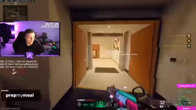 04:08:33Der Streamer wechselt zu Rainbow Six Siege, wobei er sich selbst als Ex-Champ-Spieler bezeichnet und anspruchsvolle Leistungen erwartet. In den Runden kämpft er jedoch mit einem schlechten Team und hat mit unerwarteten Problemen wie einem Schild-Operator zu kämpfen, den er als unfair empfindet. Trotz eines Comebacks nach 0:2 ist er frustriert über die Spielweise seiner Gegner und seines Teams.