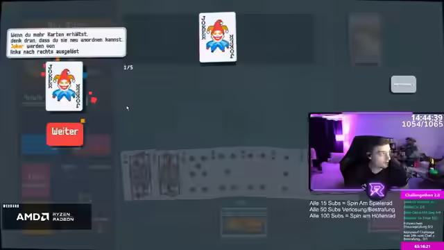 06:19:50Nach dem Poker Spiel wechselt der Fokus zu Rocket League, wo direkt ein Sieg errungen wird. Trotz des Erfolgs wird das erzwungene Tutorial als störend empfunden. Anschließend wird überlegt, welche Spiele als Nächstes gespielt werden sollen, wobei Optionen wie Fortnite und Old School RuneScape (OSRS) in Betracht gezogen werden. Es wird auch die Verlosung einer CPU angekündigt, gesponsert von AMD, und die Möglichkeit einer zukünftigen Verlosung einer Grafikkarte bei Erreichen bestimmter Sub-Ziele erwähnt. Die Community wird aktiv in die Entscheidung über die nächsten Spiele einbezogen, wobei der Streamer betont, dass er sich nach der aktuellen Session von Among Us anderen Spielen zuwenden möchte. Es wird auch die Herausforderung angesprochen, neue Spiele zu lernen, und die Notwendigkeit, sich vorerst auf bereits bekannte Spiele zu konzentrieren, bevor man sich neuen Herausforderungen stellt. Die Diskussion umfasst auch die Planung zukünftiger Streams und die Einbeziehung von Community-Vorschlägen bei der Spielauswahl.