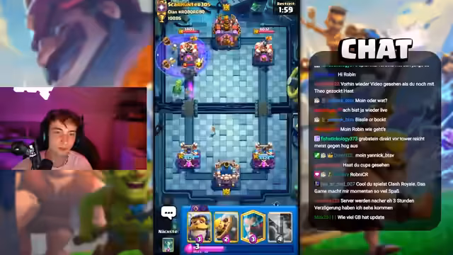 00:00:00Der Stream beginnt mit dem Ziel, die Zeit bis zum Start der neuen Fortnite-Server um 21:30 Uhr mit Clash Royale zu überbrücken. Es gab anfänglich technische Probleme mit dem Sound, die schnell behoben wurden. Der Streamer spielt Clash Royale, während er mit dem Chat interagiert und über verschiedene Themen spricht. Er erwähnt die Idee eines zweiten YouTube-Kanals für Clash Royale-Content, stellt jedoch fest, dass ihm die Zeit und die finanziellen Mittel für einen Cutter fehlen. Während des Gameplays kommentiert er die Schwierigkeit, neue und ansprechende Musik zu finden, da seine Spotify-Playlists hauptsächlich alte oder Deutschrap-Songs enthalten. Er spekuliert über die Server-Startzeit von Fortnite und die Größe des Updates, das einige Zuschauer als sehr groß empfinden. Trotz einiger Ablenkungen durch den Chat und die Musikauswahl konzentriert er sich auf die Clash Royale-Matches und versucht, seine Trophäen zu erhöhen, um die Wartezeit auf Fortnite zu verkürzen.