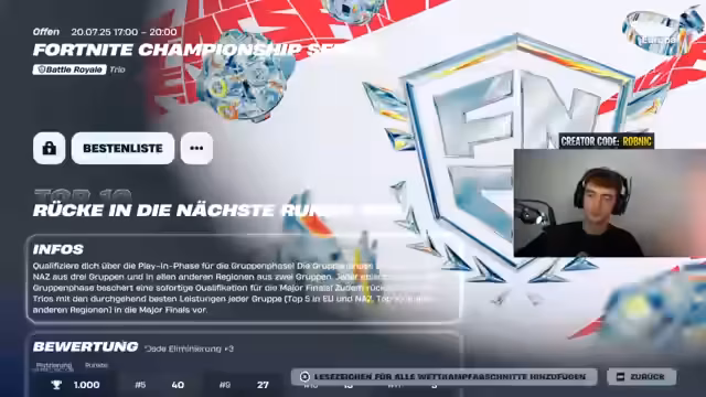 00:09:10Der Streamer erwähnt den baldigen Start des FNCS Events und schlägt vor, synchron zu starten. Er betrachtet die Drop-Map und favorisiert bestimmte Spots. Nach dem Start der Runde wird über verschiedene Drops, kämpfe und Strategien gesprochen. Der Streamer kommentiert das Spielgeschehen und äußert sich zu den Chancen einzelner Teams, insbesondere zu den deutschen Teilnehmern wie Vardial und Owl.