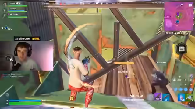 00:00:14Der Stream beginnt mit dem allerersten Blitz Cup in Fortnite. Der Streamer stürzt direkt in den ersten Versuch, landet jedoch am falschen Ort und muss sich in dem neuen No-Build-Modus erst orientieren. Die Runde endet überraschend schnell im Top 3 und wird mit einem Sieg abgeschlossen, was die Nervosität und die unvorhersehbare Natur des Formats zeigt.