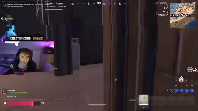 00:00:00Der Stream beginnt mit der Begrüßung der Zuschauer und der Ankündigung, dass Fortnite Chapter 7 live gespielt wird. Der Streamer, Robnic, spielt zusammen mit Dave und Magic. Er bewirbt seinen Creator Code Ropnik für den Fortnite-LiveShop, insbesondere für den neuen Battle Pass. Die gesamte Map ist noch grau, was auf die erste Erkundung der neuen Season hinweist. Die Spieler entdecken schnell einen geheimen Bunker mit einem "OP-Raum" und legendärer Ausrüstung, darunter eine "Lightning Gun". Sie experimentieren mit einem Schleim, der Unsichtbarkeit verleiht, und entdecken, dass Pili in die Geheimnisse involviert ist. Die erste Runde dient hauptsächlich der Erkundung der neuen Features und der Anpassung an die ungewohnte Spielweise, da Robnic noch keine vorherige Erfahrung in dieser Season hatte.