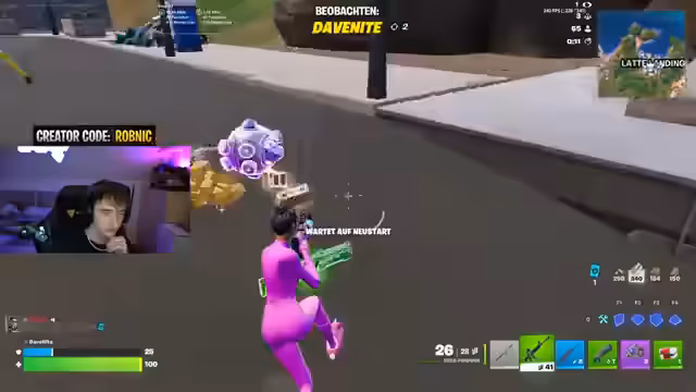 00:40:07Robnic reflektiert über seine bisherige Spielzeit von 40 Minuten, wovon er die Hälfte als Zuschauer verbrachte, und betont, dass er die Season noch nicht vollständig bewerten kann. Die Spieler diskutieren über neue Map-Features wie die "Rinne", die an GTA erinnert, und die ungewohnte Steuerung des Gleiters. Sie entdecken, dass Bauteile aus Kisten kommen, die für den beschädigten Battle Bus verwendet werden könnten. Ein weiteres interessantes Feature ist die Möglichkeit, 750 Gold aus einer Kiste zu erhalten, was einem "Free-Reboot" gleichkommt. Es wird auch erwähnt, dass nur eine begrenzte Anzahl deutscher Creator zum Chapter 7-Spiel eingeladen wurde. Die Spieler kämpfen weiterhin gegen Gegner und versuchen, sich an die neuen Waffen und deren Mechaniken, wie die doppelte Pumpgun, zu gewöhnen.
