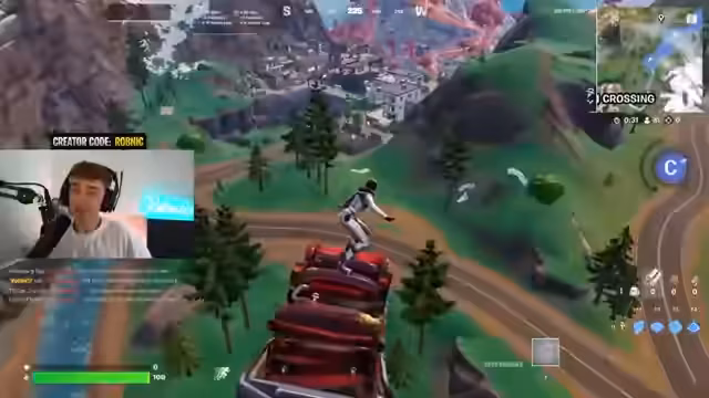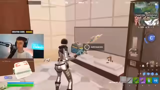 01:40:53Nach dem Duell wechselt der Streamer zum Ranked-Modus in Fortnite, da der Rang auf dem aktuellen Account zu niedrig ist. Er loggt sich auf einem anderen Account mit dem Rang Unreal ein. Für jede verlorene Runde im Ranked wird ein Skin aus 1000 V-Bucks-Verlosungen verschenkt. Er kündigt an, eine V-Bucks-Karte in den YouTube-Kommentaren zu verlosen, eine normal zu verlosen und eine direkt im Stream zu ziehen.