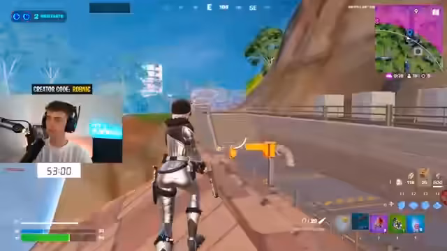 02:50:08Der Streamer kehrt zu Fortnite zurück und spielt auf dem höchsten Rang im Unreal Ranked Solo-Modus. Er landet in einer Stadt und beginnt, nach Loot zu suchen, wobei er auf eine Meisterschützen-DMR stößt. Er bemerkt einen Gegner, der sich in der Nähe aufhält, und plant, diesen auszuschalten. Trotz seiner Platzierung in den Top 1800 des Rankings betont er, dass er in dieser Season kaum gespielt hat und seine Performance daher nicht repräsentativ ist.