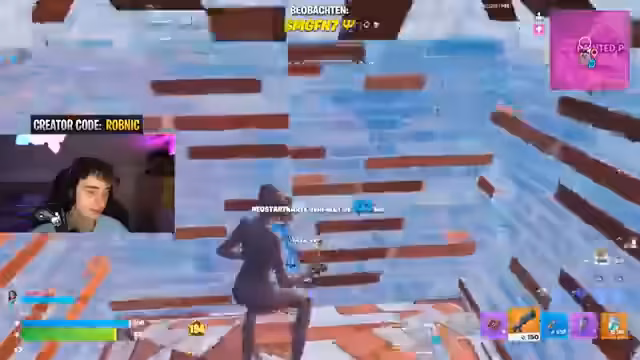 01:28:56Ein Lande-Spot neben einem Mitspieler wird als gefährlich eingestuft, da er von oben angegriffen werden kann. Der Streamer plädiert für einen schnellen Abzug oder das Locken der Gegner aus der Stadt. Es kommt zu einem Kampf, bei dem der Gegner mit einer Metal-Bomb und einer Double-Pump ausgeschaltet wird. Der Streamer fühlt sich durch sein eigenes Movemit in den Tod getrieben und kritisiert die Server-Lags.