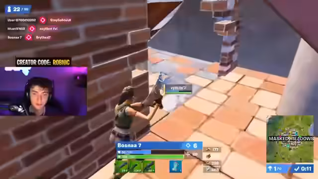 01:51:40Die letzte Runde beginnt mit 99 Spielern, die alle in Masked Meadows landen müssen. Spieler, die außerhalb landen, werden disqualifiziert. Das Spielziel ist klar: Wer die meisten Kills erzielt, gewinnt ein Skin-Paket oder Schuhe. Nach anfänglichem Chaos etablieren sich einige Spieler wie Bosna, M5 und Lenny als Favoriten durch viele Kills. Der Streamer kommentiert die spannenden Kämpfe und die herausragende Leistung von M5, der am Ende trotz großer Konkurrenz mit 11 Kills als klarer Sieger hervorgeht.