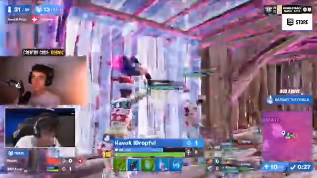 00:24:19Die erste Runde der Weltmeisterschaft beginnt. Es wird erwähnt, dass Klix und Peterbot nicht streamen, da sie die Comms nicht muten dürfen. Fredoxi gerät in einen 50-50 Kampf und stirbt. Vico hat keinen festen Landeplatz und muss improvisieren. Ein asiatisches Team verliert. Peterbot kommt spät rein und cleaned. Es wird diskutiert, ob die Camps der Spieler besser sichtbar sein sollen. Peterbot wird rebootet, was überraschend ist. Ark soll ein sehr guter Creative-Spieler sein, vergleichbar mit Peterbot und Vico. Reason hat scheinbar wenig trainiert. Es wird bedauert, dass keine Ingame-Sounds bei Reason zu hören sind. Ein Middle East-Team kämpft gegen andere Teams. Kanada hat es geschafft, sich in jedem FNCS-Finale zu qualifizieren. Es wird spekuliert, ob Reason gut genug für die Top 15 ist. Peterbot stormholded andere Teams. Vico macht ein 1-B-3, was beeindruckend ist. Queezy hat eine gute Position auf dem Highground. Peterbot erzielt nur vier Punkte in der ersten Runde.