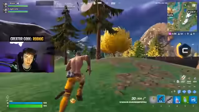 00:04:18Der Streamer und sein Partner Lame starten ins Spiel, um den Division Cup zu spielen. Die Begründung für das Spielen mit Lame anstelle von Voxy wird erläutert: Lame hatte sich gemeldet und Voxy war bereits von jemand anderem angefragt. Die ersten Kämpfe finden statt, wobei eine goldene Mammutpistole als starke Waffe identifiziert wird, auch wenn der Streamer seine Schrotflinte als unzuverlässig empfindet.