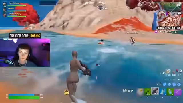 00:33:47In der ersten Runde des Cups zeigt das Trio um den Streamer starke Leistung. Das Team sichert sich frühzeitig eine Minigun und etabliert sich als eine der dominierenden Gruppen. Mit cleverem Movement, dem Platzen von Jump Pads und koordiniertem Vorgehen eliminieren sie mehrere Gegner schnell. Am Ende der Runde hat das Team zahlreiche Kills auf dem Konto, verpasst aber den durch die Zone bedingten Sieg knapp, was eine sehr hohe Punktzahl bedeutet und sie aber in eine gute Ausgangsposition für den weiteren Verlauf des Cups bringt.