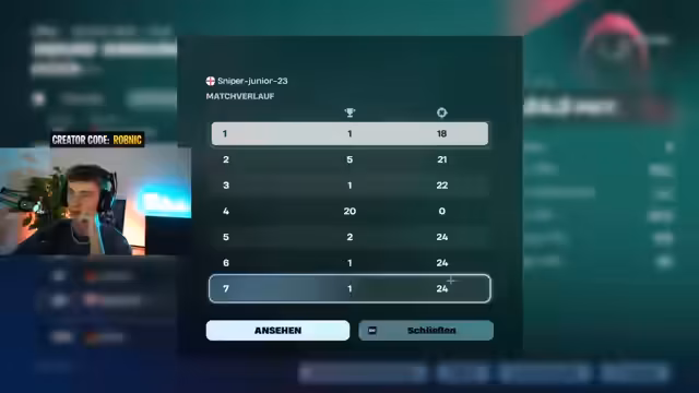 04:47:13Das Turnier endet nach mehreren Runden. Der Streamer stellt fest, dass er trotz der technischen Probleme auf Platz 63 oder 64 gelandet ist. Da dies weit unter dem Limit von 1300 für den Skin liegt, kann dieser dennoch gewonnen werden. Die Stimmung ist gemischt; der Streamer ist von der reibungslosen Turnierdurchführung enttäuscht und kritisiert die grassierende Cheater-Szene. Dennoch blickt er positiv in die Zukunft und kündigt an, aus dem Material ein Video zu schneiden und möglicherweise weitere Cups zu spielen.