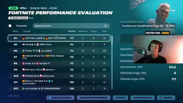00:01:59Es wird eine Viewingparty zum Duo Performance Cup veranstaltet, da ich nicht selbst teilnehmen kann, weil ich nicht in Division 1 bin. Die Teilnahme am Cup ist auf Spieler der Division 1 beschränkt, was bedeutet, dass man entweder im Finale des Trio Division Cups gewesen sein muss oder zu den Top 600 Spielern in Duos gehören muss. Ich werde am Wochenende versuchen, mich wieder hochzuspielen, um zukünftig teilnehmen zu können. Bis zum Start des Turniers um 18 Uhr werde ich Reload spielen, um schon mal online zu sein. Ich bin gespannt auf die Duo-Matches und wie die Spieler agieren werden, da ich noch nie einen Performance Cup im Stream verfolgt habe. Es wird erwartet, dass die Matches interessant werden und ich werde aufmerksam verfolgen, wer mit wem im Duo spielt und wie die Spielweisen aussehen werden. Die Map funktioniert wieder gut, was das Spielerlebnis deutlich verbessert.