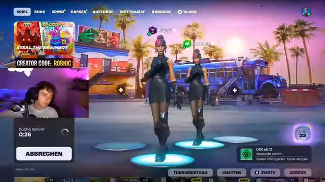 00:08:34Mit einem präzisen Countdown auf 19 Uhr beginnt die unmittelbare Vorbereitung auf den Duo Victory Cup. Der Streamer deaktiviert bewusst seine Kamera, um volle Konzentration auf das Spiel zu legen und Störungen zu vermeiden. Parallel dazu wird die Entscheidung zwischen dem Victory Cup und einem alternativen Duo Rank Cup diskutiert – am Ende fiel die Wahl auf den Victory Cup aufgrund der höheren Wettbewerbsintensität. Die letzten Minuten vor Start werden für praktische Adjustierungen genutzt: Skin-Auswahl, Inventar-Check und die Abstimmung der Frühphasen-Strategie, um optimal in die erste Runde zu starten.