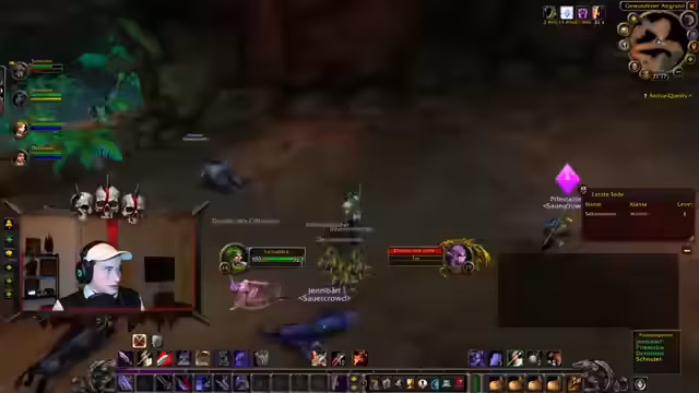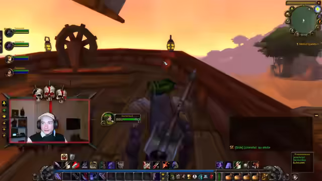 00:00:27Der Stream beginnt mit einer direkten Fortsetzung des Spiels. Die Gruppe, bestehend aus LarsS und anderen Spielern, hat das Ziel, die Instanz Deadmines auf Hordenseite, auch bekannt als Höhlen des Wehklagens, zu besuchen. Zuvor muss der Flugpunkt in Booty Bay angeflogen werden, um mit dem Schiff nach Kalimdor überzusetzen und in Ratchet zu landen, von wo aus der Weg zur Instanz beginnt. Der Streamer betont, dass die Hordenzone Brachland legendär und der Chat einst für seine humorvollen Chuck-Norris-Witze bekannt war, auch wenn sie jetzt hauptsächlich neutrale Mobs enthält.