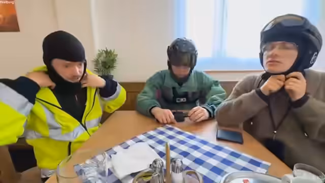 03:04:38Nach einem Sturz, bei dem er sich leicht am Kopf verletzte, wurde Jonsmann darauf hingewiesen, ausreichend zu trinken, was er zuvor versäumt hatte. Die Gruppe diskutierte über die weitere Vorgehensweise und plante, zum Mittagessen aufzubrechen. Dabei wurde über verschiedene Abfahrtsmöglichkeiten und die beste Route zum Restaurant beraten. Jonsmann entschied sich aufgrund seiner Kopfschmerzen, eine Pause einzulegen und im Restaurant einen Platz zu suchen, während die anderen noch eine kurze Abfahrt unternahmen. Während der Fahrt wurde die Landschaft gefilmt und über frühere ähnliche Erlebnisse gesprochen. Es gab kurzzeitig Probleme beim Anhalten und Schwierigkeiten mit den Skiern, aber letztendlich erreichten alle das Ziel.