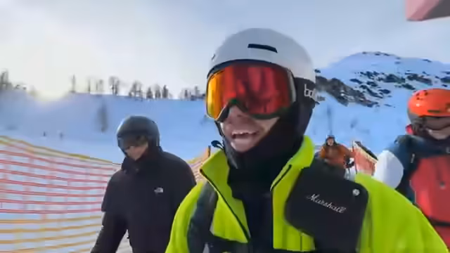 00:34:43Die Streamer beginnen mit der Abfahrt auf den Pisten und erleben erste technische Herausforderungen. Die Sonne schien stark, was dazu führte, dass der Schnee matschig wurde. Sie erwägen, eine schwarze Piste zu befahren, entscheiden sich jedoch stattdessen für eine rote Piste, die sie als anspruchsvoller empfinden. Während der Fahrt probieren sie den Cinematic-Modus für ihre Kameras aus und erleben lustige Momente, bei denen sie sich gegenseitig mit Skistöcken bewerfen und über verschiedene Filmtechniken diskutieren.