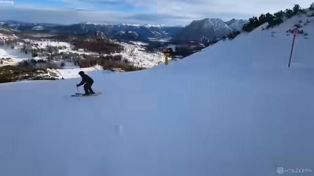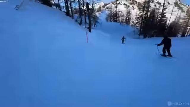 00:57:32Nach mehreren Pistenabfahrten diskutieren die Streamer über ihre körperliche Verfassung. Sie fühlen sich zwar nicht extrem erschöpft, aber durchgenudelt und bemerken, dass das Atmen schwieriger wird. Sie bewerten verschiedene Pisten und stellen fest, dass eine schwarze Piste vielleicht nicht steiler, aber rutschiger als eine rote sein könnte. Sie beschließen, die schwarzen Pisten für den letzten Tag aufzusparen, als sie auf Skifahrer treffen, die mit Telemark-Skiern eine schwarze Piste hinunterfahren, was beeindruckend aussieht. Die Streamer äußern den Wunsch,有一天 auch Telemark-Ski zu versuchen.