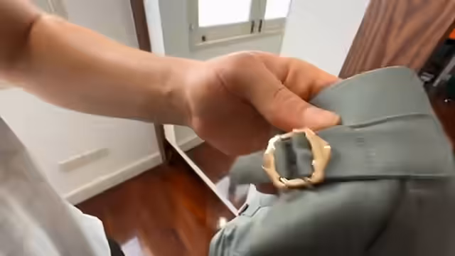 00:08:42Im Geschäft des Schneiders angekommen, probiert Ronny die erste Version seines Hochzeitsanzugs an. Der Anzug besteht aus Jacke und Hose in zwei verschiedenen Stoffen und Farben. Die Jacke ist kariert in Weiß, Schwarz und einem leichten Rotton, während die Hose in einem Oliv- oder Türkisgrton gehalten ist. Ronny ist aufgeregt, da die ungewöhnliche Farbkombination ein Risiko darstellt, aber der Schneider war bereits optimistisch. Die Teile sind noch nur provisorisch mit Nadeln verbunden, um erste Anpassungen vorzunehmen.