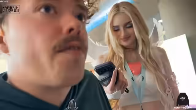 02:03:06Die Gruppe wartet vor dem Eingang des Convention Centers auf Isa, die Probleme mit ihrem QR-Code für den Einlass hat, da sie einen Code auf der Website nicht eingegeben hatte. Während des Wartens wird die beeindruckende Optik des Eingangs bewundert, der an eine Szene aus der Serie „Succession“ erinnert. Es wird über die Namensgebung des Streams nachgedacht, um das bevorstehende Produkt-Testing von deutschen Snacks und Influencer-Produkten für Amerikaner optimal zu bewerben. Vorschläge wie „Amerikaner testen Gönnergy“ oder „Amis testen deutsche Snacks und Influencerprodukte“ werden diskutiert, wobei die Kürze und Prägnanz des Titels für die App-Ansicht betont wird. Es wird humorvoll angemerkt, dass Isa, die normalerweise selbst auf andere warten lässt, nun diejenige ist, auf die gewartet wird, was ihre Langsamkeit unterstreicht. Schließlich wird ein amerikanischer Streamer namens Knut getroffen, der aus Norwegen stammt, aber in den USA lebt und sich bereit erklärt, deutsche Produkte zu probieren.