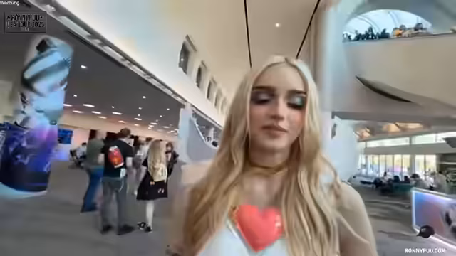 02:50:27Auf dem Weg zur Partner Lounge wird die Idee geäußert, Amouranth ein Duplo zu geben. Es folgt eine weitere Begegnung, bei der eine Person mit 200 TikTok-Followern angesprochen wird. Es wird ein glutenfreier deutscher Snack, eine Yogurette, angeboten und zum Testen übergeben. Die Person bewertet die Yogurette mit 6 von 7 Punkten. Eine weitere Person, Riley, probiert ebenfalls eine Yogurette und bewertet sie mit 4 von 7 Punkten, da der Geschmack für sie zu intensiv ist. Es wird erwähnt, dass Riley ebenfalls streamt und ihr Twitch-Kanal geteilt wird. Die Gruppe setzt ihre Wanderung fort und trifft auf weitere Cosplayer und Aussteller, darunter einen Stand, an dem man sein eigenes Lichtschwert bauen kann. Die Preise für die Lichtschwerter werden besprochen, wobei eine RGB-Version 160 Dollar und eine NeoPixel-Version 260 Dollar kostet.