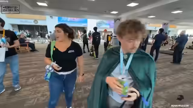 01:15:16Der Weg zum Convention Center beginnt mit einer zu Fuß zurückgelegten Strecke. Die Anreise gestaltet sich unkompliziert, wobei das Wetter angenehm ist. Nach der Ankunft muss zuerst der Badge für die Messe abgeholt werden. Dieser Prozess birgt zunächst einige Schwierigkeiten, da ein Code-Problem die Registrierung verzögert. Der Streamer nutzt die Wartezeit, um mit seinem Kostüm Eindruck zu schlagen und Fotos zu machen.