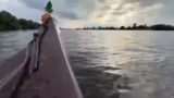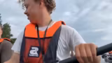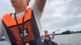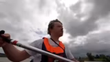 02:51:54Die Gruppe erreicht nun eine Zone des Flusses, in der die Schifffahrt intensiver und das Fahrverhalten der Schiffe gefährlicher wird. Der Fluss fließt nicht mehr flussabwärts, sondern wird von Gegenwind behindert. Dies macht das Paddeln anstrengender. Zudem gibt es ernste Warnungen vor der Todeszone der Strecke, an der vor zwei Jahren ein Toter zu beklagen war. Eine humorvolle, aber potenziell katastrophale Drohung wird ausgesprochen, falls der Autoschlüssel des Transporters ins Wasser fallen sollte, was das Ende der Tour bedeuten könnte.