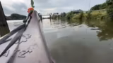 03:39:25Das Kanu gerät erneut in eine kritische Lage, als es unausweichlich auf einen neuen, unter Wasser liegenden Stein auffährt. Eine der Personen ist dabei, das Kanu zu verlassen, um es freizubekommen, während ein anderes Teammitglied das Paddel verliert. Die Gruppe muss improvisieren und umständlich manövrieren, um das Boot von der Felsbank zu lösen. Dieser Vorfall verdeutlicht die körperliche Anstrengung und die unvorhersehbaren Gefahren der Tour.