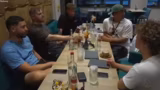 12:44:51Die Gruppe stellt fest, dass ihr Badezimmer aus Glas ist, was für Verwirrung sorgt. Ein Teilnehmer kann nicht gleichzeitig duschen und auf die Toilette gehen, da die ganze Situation durchscheu ist. Das Streaming wird aufgebaut, und sie planen, später 'Werewolf' zu spielen. Es werden technische Probleme mit dem WLAN erwähnt. Ein Teilnehmer muss auf Ronny warten, da er duscht. Die Gruppe ist sich einig, dass die Situation komisch ist, aber sie lachen darüber hinweg.