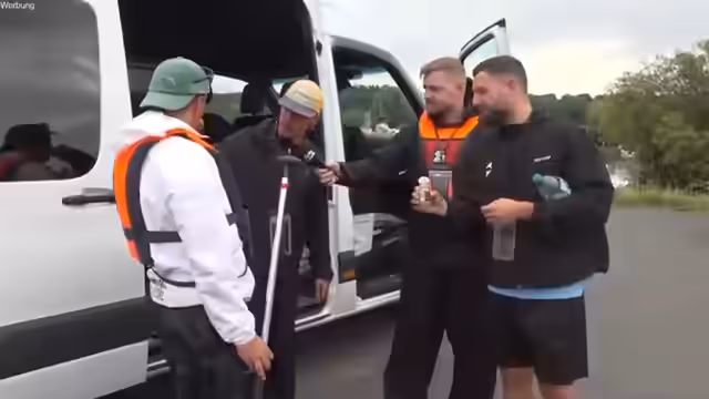 01:36:53Am Ufer herrscht eine hektische Atmosphäre. Es wird kritisiert, dass die Vorbereitungen nicht optimal verliefen und die Teams nicht smart zusammengestellt wurden. Niki Stemmler, der noch sein frisch getrocknetes Ingwerwasser trinkt, wird als 'zu fresh' verschrien und soll sich umziehen. Die Stimmung ist gemischt aus Hektik und Humor. Die Gruppe entscheidet, die Teams für die nächste Teilstrecke neu zu mischen, um ein besseres Gleichgewicht zu schaffen und die Dynamik zu verbessern.