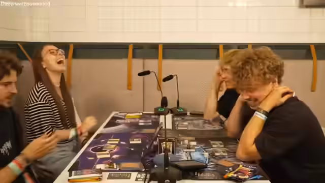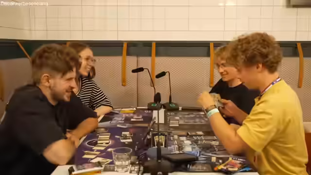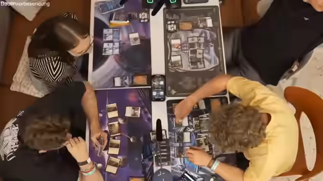 06:54:25Im weiteren Spielverlauf werden fortgeschrittenere Strategien und Karteneffekte erörtert. Es werden Karten gespielt, die Effekte auslösen, wenn bestimmte Bedingungen erfüllt sind, wie das Ausspielen von Zaubersprüchen mit hohem Mana-Betrag. Es werden Mechaniken wie das Platzieren von Markern auf Kreaturen eingeführt, die deren Stärken erhöhen. Die Spieler beginnen, synergistische Effekte zu nutzen, bei denen mehrere Karten gemeinsam starke Kombos erzeugen. Die Gespräche drehen sich darum, welche Kreaturen angreifen, welche verteidigen und wie der Schaden am effektivsten verteilt werden kann.