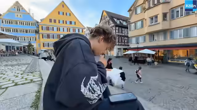 00:01:19Der Streamer befindet sich in Tübingen und bespricht seine Kleidung mit den Zuschauern. Nach einer Unterhaltung über Spinnen und ein beinahe Umkippen des Fahrzeugs geht es darum, einen Kaffee oder Kakao in der Stadt zu holen. Der Streamer trifft auf einen Studenten namens Jonas und unterhält sich mit ihm über Studienfächer wie Soziologie und Erziehungswissenschaft. Zudem spricht er über seine eigene Zeit als Student und seine Entscheidung, das Studium vorerst zu pausieren, um alsStreamer zu arbeiten, und erzählt von seinem gesparten Geld.