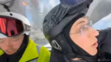 02:58:04Die Gruppe diskutiert ihre Geschwindigkeiten auf der Piste. Einer erreicht 66,4 km/h, was für einen Anfänger als krasst empfunden wird. Die Ski-Lehrerin hat ihnen als blutige Anfänger eine klare Ansage gemacht und bemängelt ihr hohes Tempo. Sie haben daraus gelernt und versuchen nun, ihre Technik zu verbessern, um sicherer und kontrollierter zu fahren, besonders bei unerwarteten Situationen.