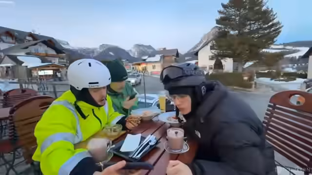 07:59:00Während der Pause im Restaurant diskutieren @Knirpz und @jonsmann über ihre Gesundheit, wobei @Knirpz über erhöhte Cholesterinwerte und Hämorrhoiden spricht. Sie wählen daraufhin ihre Gerichte bewusst, um gesünder zu essen. Für den Abend planen sie einen Kochstream, da sie sich für die restlichen Tage entspannter verhalten wollen und auf die Alpen-Pause verzichten möchten. Der Fokus liegt auf einer ausgewogenen Erholung, nachdem der erste anstrengende Skitag absolviert ist.