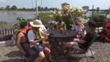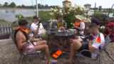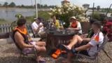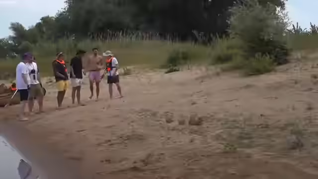 12:34:01Nach einer ereignisreichen Fahrt erreichen die Teilnehmer ihr erstes Etappenziel. Die Ankunft im Dorf wird von lokalen Bewohnern beobachtet, was für Überraschung sorgt. Die Gruppe diskutiert über die mögliche Weiterfahrt und die Notwendigkeit, die Boote zu sichern. Dabei kommt es zu lustigen Anekdoten und Überlegungen, wie es weitergeht.
