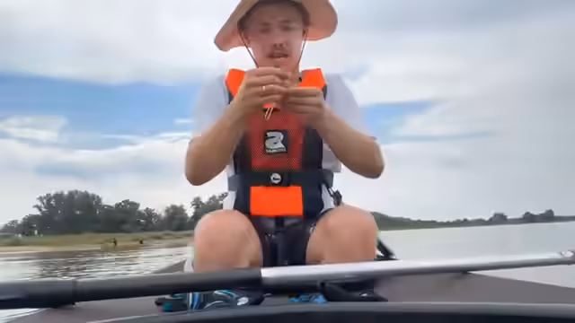 12:33:05Bei der Fahrt nehmen die Teilnehmer an einem informellen Wettrennen teil und stellen fest, dass sie eine gute Chance haben, zu gewinnen. Die Stimmung ist euphorisch, als sie realisieren, dass sie möglicherweise die Ersten sein könnten. Die Gruppe spricht über die Herausforderungen der Strömung, die sie zur Seite drückt, und genießt die schönen Aussichten entlang des Flusses.