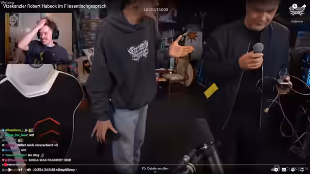 00:51:07Berger berichtet über einen unerwarteten Besuch im Stream: den deutschen Vizekanzler Robert Habeck. Er beschreibt, wie Habeck ohne große Vorankündigung erschien und mit ihm und anderen über Gaming und Politik sprach. Berger betont, dass es sich um eine authentische und ungewöhnliche Begegnung handelte, die weit von typischen Polit-Auftritten entfernt war. Er warnt seine Zuschauer vor übertriebenen Reaktionen auf Politiker und ruft zu mehr Respekt und Gelassenheit im Internet auf. Der Besuch wird als besonderes Highlight des Streams dargestellt, das sowohl unterhaltsam als auch ungewöhnlich war.