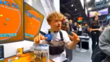 07:14:52Der Streamer wechselt das Setting und übernimmt spontan die Rolle eines Kochs in einem Bereich der Messe. Er beginnt, Nudeln zuzubereiten und wird von seiner 'Kamerafrau' Juni begleitet. Er interagiert mit den wartenden Gästen, serviert die Gerichte und sorgt für eine lockere, etwas chaotische Atmosphäre während des Kochvorgangs.