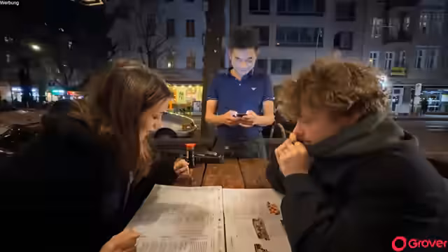 04:05:57Es wird die Frage nach der Verfügbarkeit von Grover in anderen Ländern gestellt. Es wird bestätigt, dass Grover nicht in der Schweiz verfügbar ist, aber möglicherweise in Österreich, den Niederlanden, Spanien und den USA. Die Streamer suchen nach einem Ort zum Essen und überlegen, ob sie Pizza essen sollen, entscheiden sich aber dagegen, um die Karten nicht zu verschmieren. Sie suchen nach einer Alternative, die man mit Besteck essen kann, und finden eine asiatische Küche mit Sushi und vietnamesischen Gerichten. Die Idee, draußen zu sitzen, wird bevorzugt, um ein "Street Magic"-Erlebnis zu haben. Die Suche nach dem passenden Gericht führt zu einer Diskussion über verschiedene aspekte der Speisekarte, wobei schließlich eine Bestellung für vegane Veggie Special Rolls, Glory Peanut mit Tofu und Edamame aufgegeben wird, begleitet von Apfelschorlen.