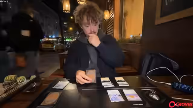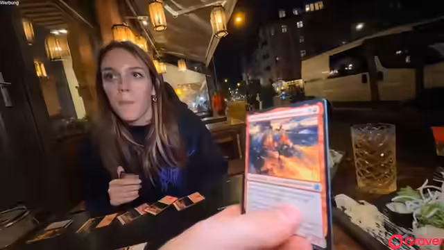 03:01:44Während des Streams kommt es zu einer unerwarteten Begegnung mit einem Passanten. Luara muss dringend auf die Toilette, und während Ronny eine Lösung sucht, werden sie von einem Mann angesprochen. Er fragt, ob sie OnlyFans machen, was zu Verwirrung und Gelächter führt. Später schenkt ein weiterer Passant, Kai, den Streamern eine seltene Magic-Karte, die noch nicht offiziell veröffentlicht wurde. Kai, den Ronny bereits kannte, macht einen Kartentrick und die Karte wird als potenzielles Giveaway für zukünftige Streams in Betracht gezogen. Die Streamer sind begeistert von dem unerwarteten Geschenk und der Seltenheit der Karte.