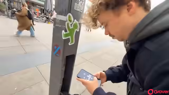 00:38:08Ronny und Luara nutzen die offizielle Geocaching-App und entdecken einen Mikro-Cache direkt neben ihnen am Alexanderplatz. Der Cache hat eine Schwierigkeit von drei von fünf und eine Terrain-Bewertung von 1,5. Ronny liest die Beschreibung vor, die besagt, dass der Cache mitten in Berlin am Alexanderplatz versteckt ist und mit geübten Augen zu entdecken sein soll, aber nicht am Gebäude. Sie werden darauf hingewiesen, einen günstigen Moment abzuwarten, um den Cache zu bergen und zurückzulegen, da das Muggelaufkommen (Nicht-Cacher) hoch ist. Ronny betont, dass sie die Orte nicht spoilern werden, da ihre Community die Caches nicht beschädigen würde, sondern es als Werbung für den Sport sehen soll.
