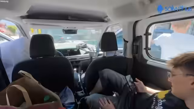 06:34:02Endlich auf der Fähre angekommen, stellen die Streamer ihr Fahrzeug in der Garage D ab. Die Atmosphäre ist eine Mischung aus Erleichterung und Neugier. Es gibt nun Zeit, die über 12 Stunden dauernde Überfahrt zu planen. Sie überlegen, welche persönlichen Gegenstände sie in der Kabine und welche sie im Auto lassen sollen, da während der Fahrt kein Zugang zu den Fahrzeugen möglich sein wird.