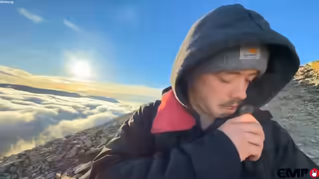 02:27:34Mit einer Wette gegen den Chat startet Ronny den Abstieg: Schafft er es in 90 Minuten hinunter? Er beschreibt die Gefahren des Weges – Rutschgefahr, Steinschlag und Gelenkschmerzen – und betont, dass der Rückweg trotz kürzerer Distanz anstrengender ist. Während des Abstiegs bleibt die Verbindung instabil, aber Ronny bleibt motiviert.