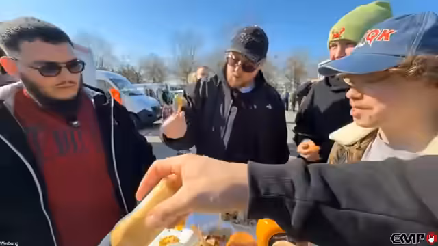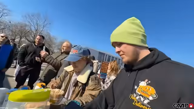 04:30:35Aufgrund von Hunger beschließen der Streamer und sein Team, etwas zu essen zu suchen. Sie stoßen jedoch auf ein Problem: Der gesamte Flohmarkt scheint ausschließlich fleischbasierte Gerichte anzubieten. Für den Streamer, der angibt, Vegetarier zu sein, gibt es fast keine Optionen. Schließlich sieht er einen Verkaufstand mit Saucen, was ihn auf die Idee bringt, seine eigenen belgischen Saucen zu probieren und zu bewerben.