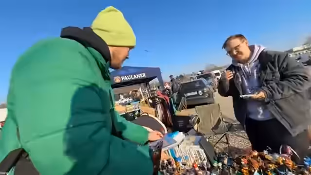 03:14:04Fassler gibt als Profi seine Flohmarkt-Taktiken preis: Privatleute sind oft die besten Quellen für Schnäppchen, da sie die Preise nicht kennen. Er selbst sucht nach Spielen wie Pokémon Y oder Platinum. Die Streamer starten eine Verhandels-Challenge: Sie versuchen, extrem niedrig zu offerieren, um zu sehen, wie weit sie herunterhandeln können, planen aber am Ende, den ursprünglichen Preis zu zahlen, um fair zu bleiben und die Freude am Handeln zu bewahren.