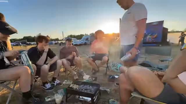 Auf dem Festivalgelände fand eine Allianz-Challenge statt. Zuvor war es bei der Ankunft zu einem kritischen Unfallvorfall gekommen. Der Fokus verlagerte sich zu persönlichen Themen wie der Hochzeit. Beim gemeinsamen Grillen gab es Diskussionen um die Zubereitung von vegetarischem Fleisch und humorvolle Anekdoten über Essensvorräte.